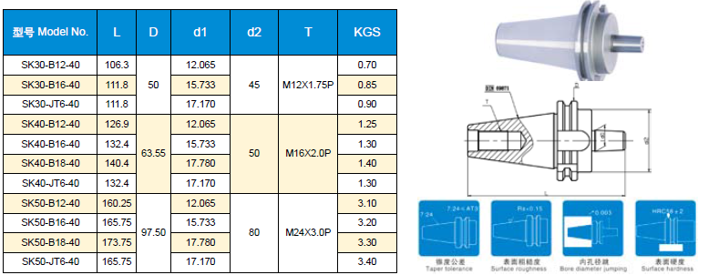 下一篇:SK(DIN69871A)-MTB 斜柄鉆頭套筒 上一篇:SK(DIN69871A) 側(cè)固式立銑刀柄